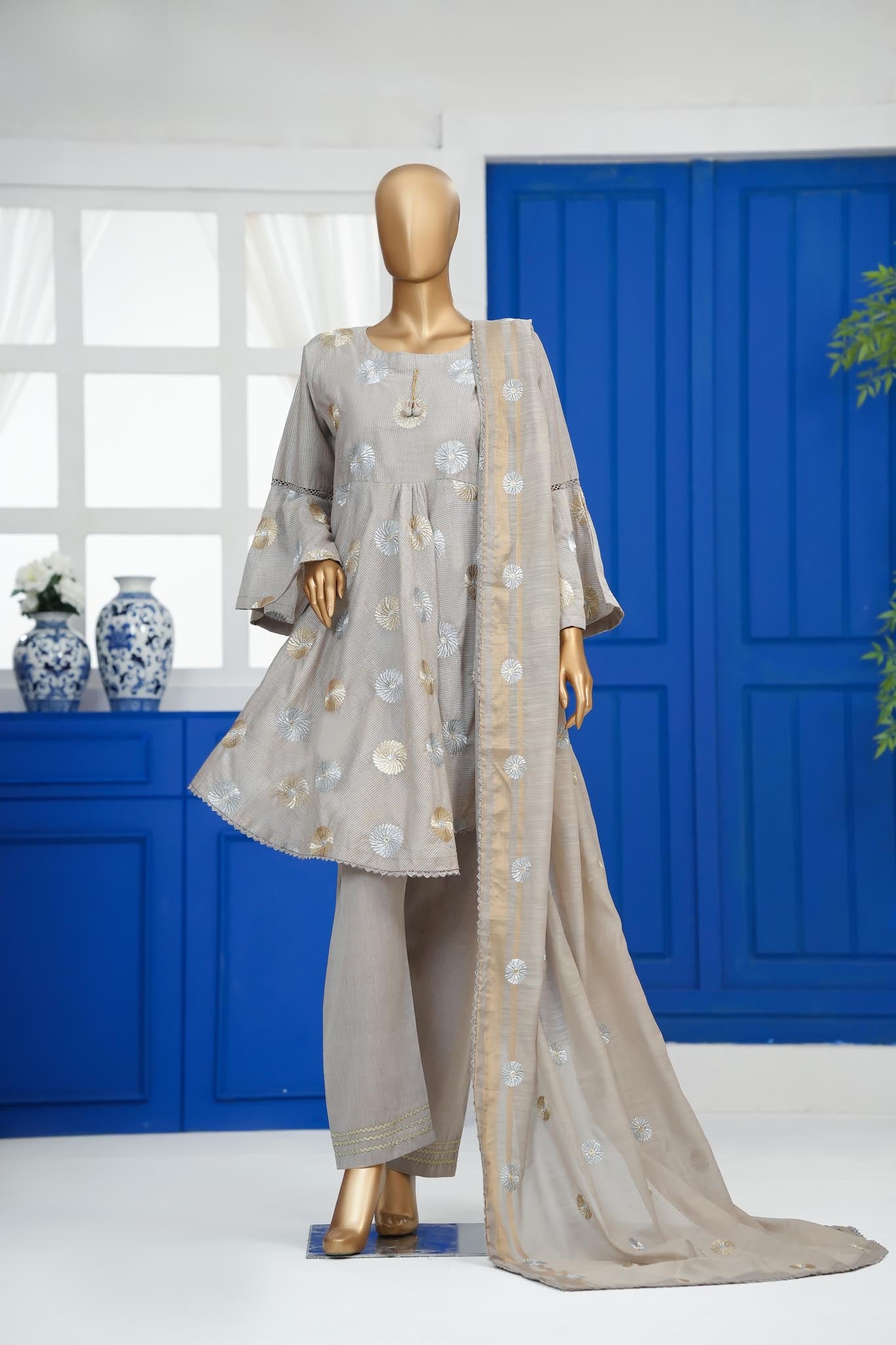 Introducing the Grace Collection, thoughtfully designed for women in Pakistan who appreciate simplicity with timeless elegance. This fully stitched ensemble features a soft cotton shirt and trousers, paired with a beautifully flowing Monar dupatta that adds a refined finishing touch.